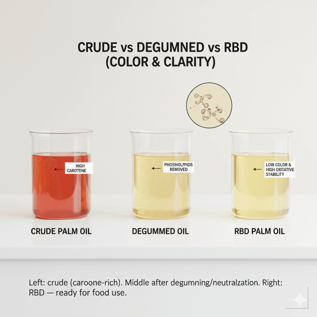The process is especially beneficial for refining crude palm oil and coconut oil, given their low phospholipid and high FFA contents.